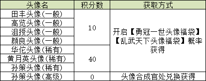 ·勇冠一世头像福袋、乱武天下头像福袋,概率公示如下:·