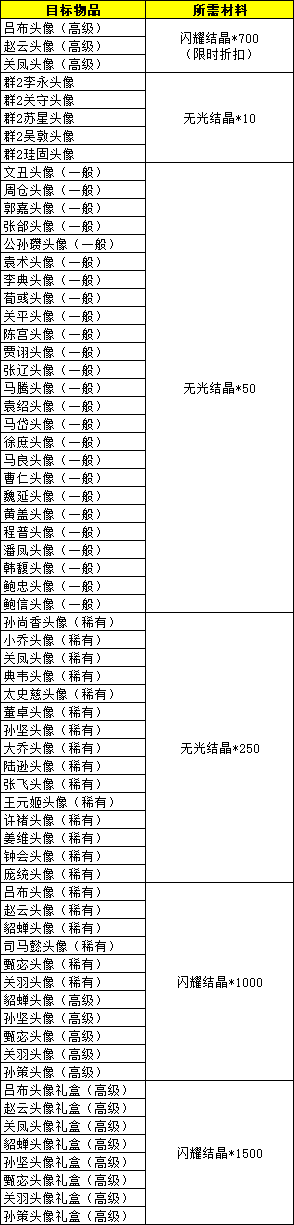 ·从本期起,高级头像将会不定期轮换折扣,本期轮换折扣头像为吕布头像(高级)、赵云头像(高级)、关凤头像(高级)