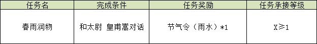 3.演义大厅的太尉 皇甫嵩处,新增季节活动每日任务《春雨润物》