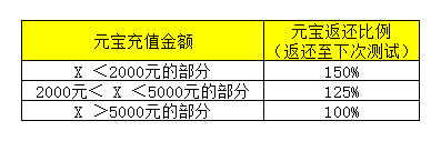 小明在公平二测中,充值了5050元的元宝,那么下次测试他将被返还: