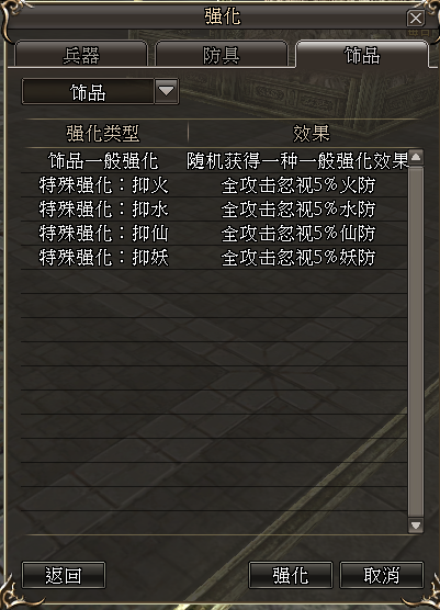 4、大小橙武:消耗一定数量的灵尘兑换、升级而获得的强力武器。大橙武属性较高,但兑换、升级所需的灵尘数量较多;小橙武兑换、升级所需的灵尘数量较少,但属性也比大橙武略低。