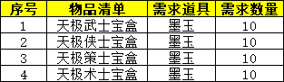 1、演义大厅中,墨玉奖励官处新增天极装备宝盒的兑换,兑换列表如下: