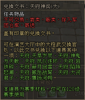 2)小橙武转换为大橙武:主公可以使用任意等阶的小橙武兑换文书和相应的差价材料,兑换一阶的大橙武兑换文书,之后可凭此文书免费兑换任意一阶大橙武。