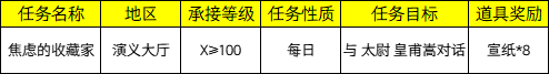 2、演义大厅中NPC「太尉 皇甫嵩」处新增每日任务