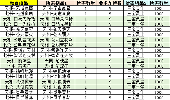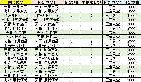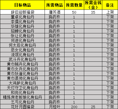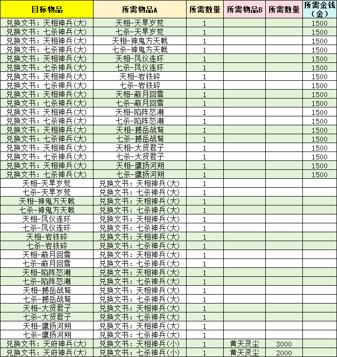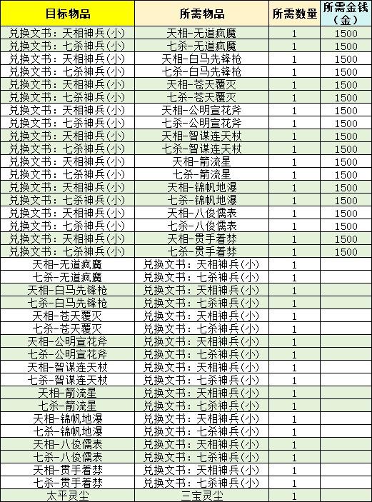 13、演义大厅中,新增NPC「物品升级官」,兑换列表如下: