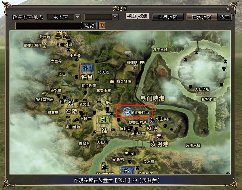 ·“张邈”、“典韦”、“卫兹”将在天柱山的天柱山寨同时出场,位置如下