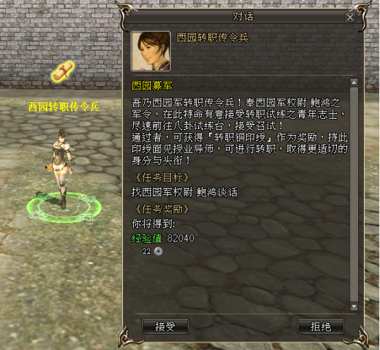 · 主公需先前往东郡城、寿春城、谯城的「西园转职传令兵」处,完成任务《西园募军》取得“转职铜印绶”(已上架五铢钱商店),随后便可前往各自职业的NPC导师处使用“转职铜印绶”进行进阶转职。