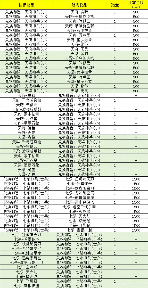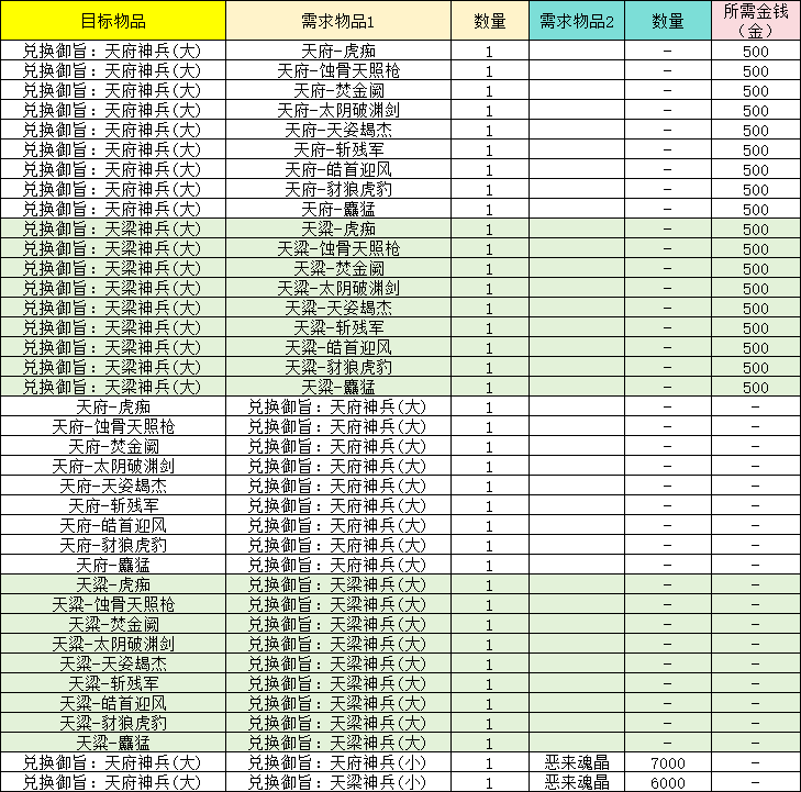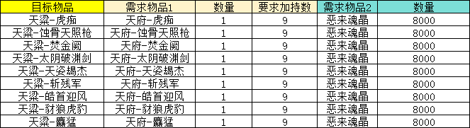18、演义大厅的「大橙武置换官」处,移除原有兑换条目,新增兑换列表如下: