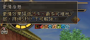 豪情渐息:豪情效果降低25%,最多可堆栈3层,持续5秒,不可解除